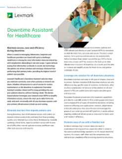 En los departamentos auxiliares, independientemente del lugar del hospital, el Asistente de tiempo de inactividad y la impresora multifunción de Lexmark garantizan que los médicos tengan fácil acceso a los formularios y documentos más actualizados y puedan canalizar los datos a los centros de mando al instante.